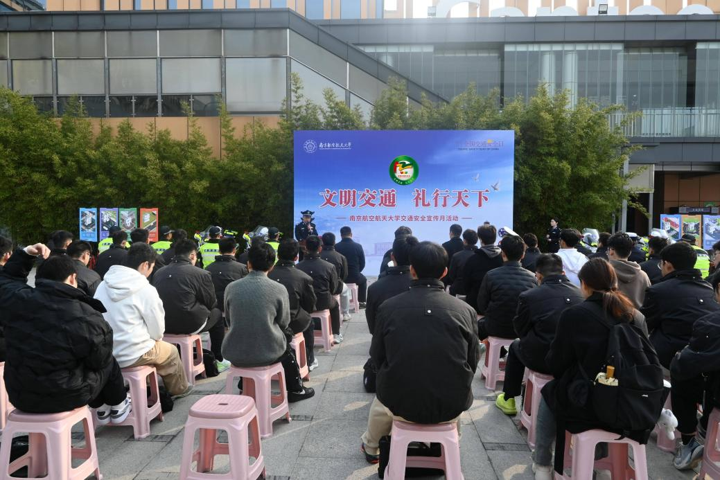 为切实筑牢校园交通安全防线,提升师生文明出行意识,南京航空航天大学天目湖校区紧扣全国交通安全日宣传要求,成功举办了以“文明交通,礼行天下” 为主题的交通安全宣传日活动。溧阳市公安局副局长李晓敏、天目湖校区管委会主任缪长宗、校保卫处副处长袁琪、天目湖校区管委会副主任于晓,以及溧阳交警大队警官、牧星学院和通用航空与飞行学院学生代表共同参与了此次活动。